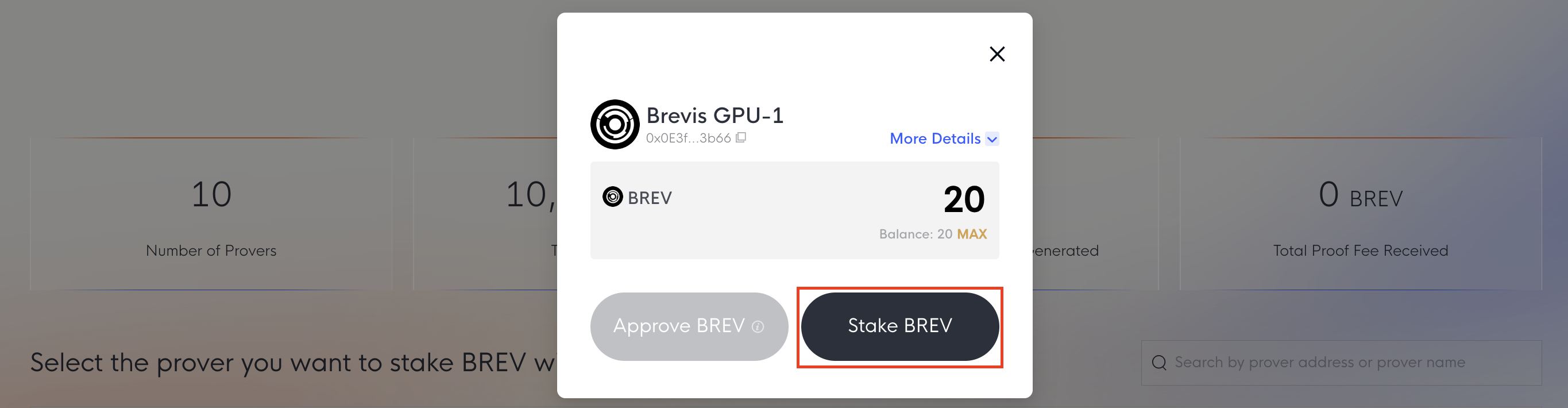 - Direct Staking: Users can stake with any active prover by depositing BREV tokens into the